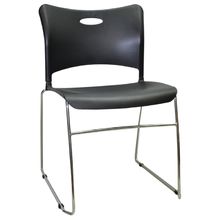 Black moulded polypropylene with upholstered back pad.